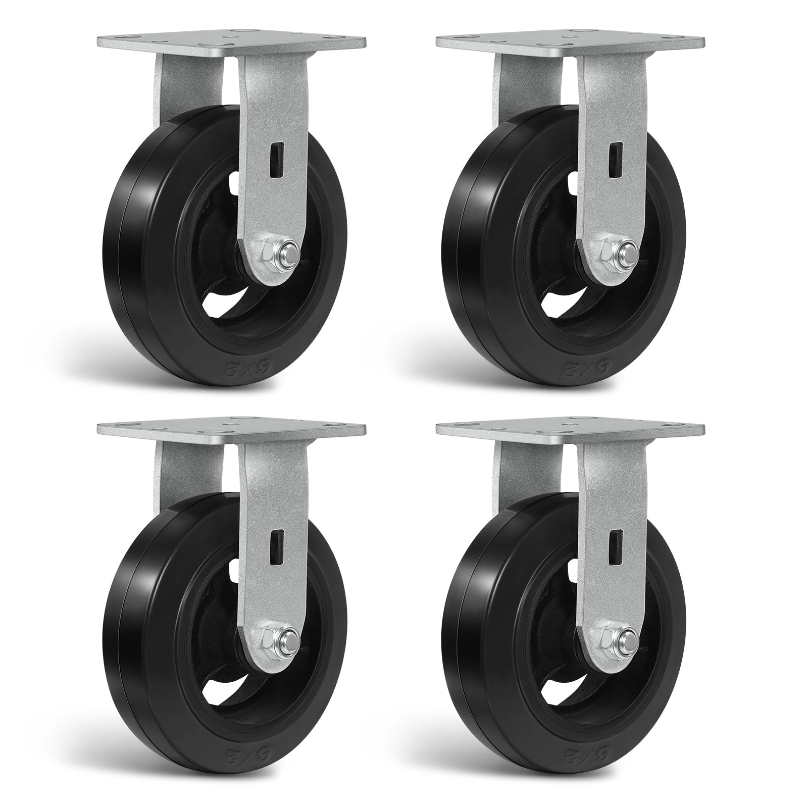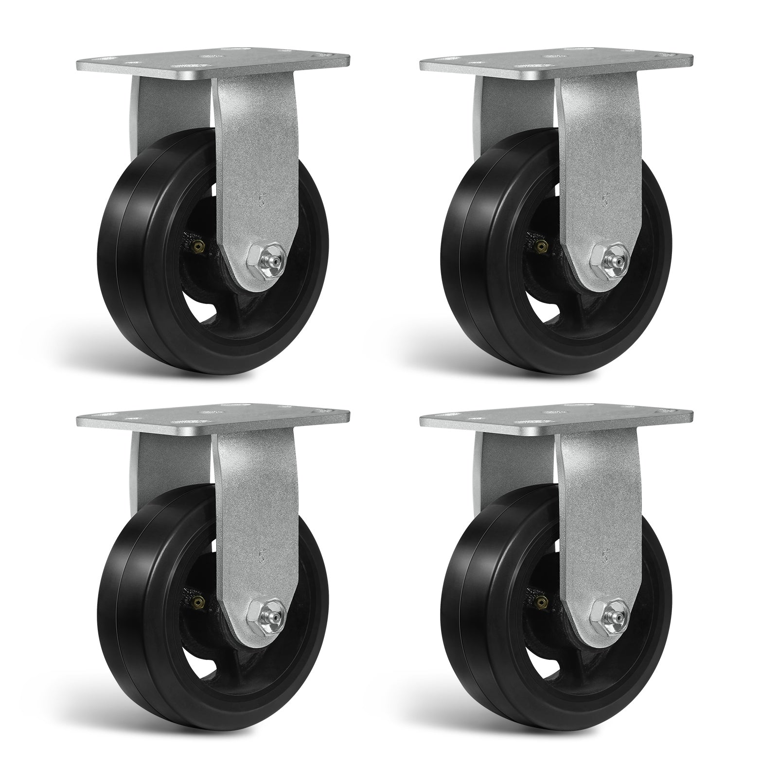 Heavy Duty Casters - Rubber Tread on Cast Iron Core, Caster Wheels for Heavy-Duty Mobility