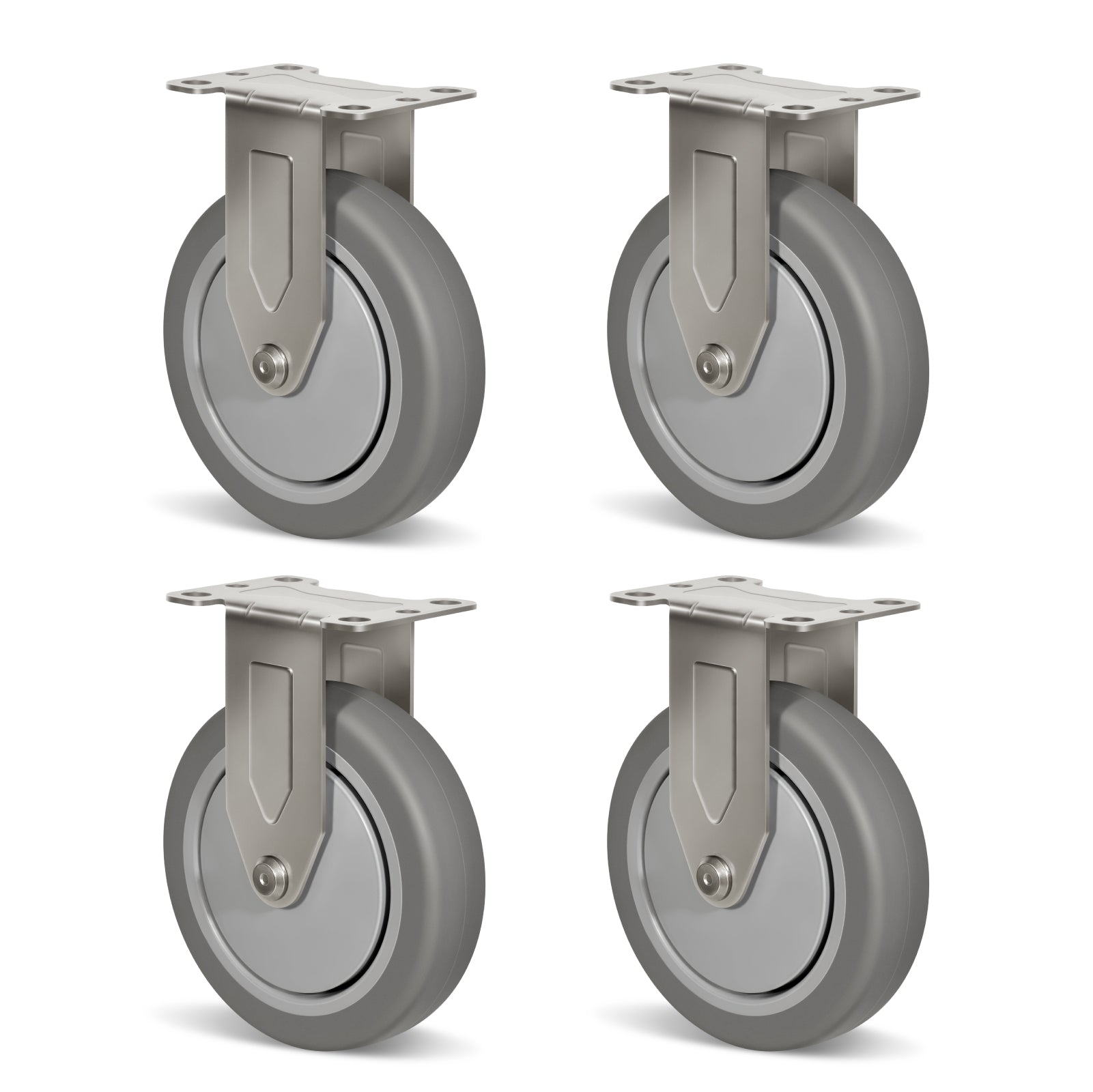 Crafted from high-quality stainless steel yoke and durable rubber wheels, these heavy-duty casters are built to endure harsh conditions. They provide reliable defense against wash-downs, cleaning agents, steam, caustic solutions, and other challenging environmental factors.